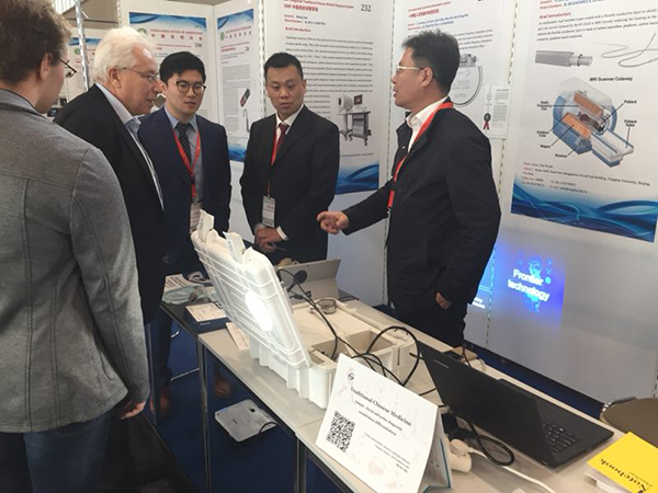 蕪湖圣美孚科技有限公司申報(bào)項(xiàng)目在順利通過國(guó)內(nèi)多重審查遴選后,成為中國(guó)中醫(yī)診療設(shè)備企業(yè)代表,作為中國(guó)代表團(tuán)成員參加了本次發(fā)明展。同時(shí)受邀參展的中國(guó)代表團(tuán)項(xiàng)目成員還有清華大學(xué)、北京交通大學(xué)、北京宇航系統(tǒng)工程研究所、中國(guó)航天科技集團(tuán)、國(guó)家電網(wǎng)公司等。11月2日展會(huì)開幕,中國(guó)駐德國(guó)大使館特派科技一秘李國(guó)強(qiáng)教授前來(lái)展會(huì)參觀中國(guó)代表團(tuán)并鼓勵(lì)。