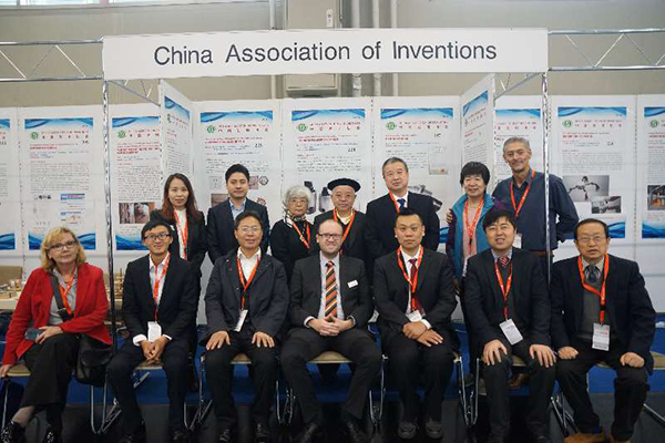 宣團(tuán)長(zhǎng)率中國(guó)發(fā)明協(xié)會(huì)部分代表與發(fā)明展主席HENNING(前排中)、歐洲發(fā)明協(xié)會(huì)副主席BRENKA(前排左1)、葡萄牙發(fā)明協(xié)會(huì)主席費(fèi)爾南多(后排右1)合影